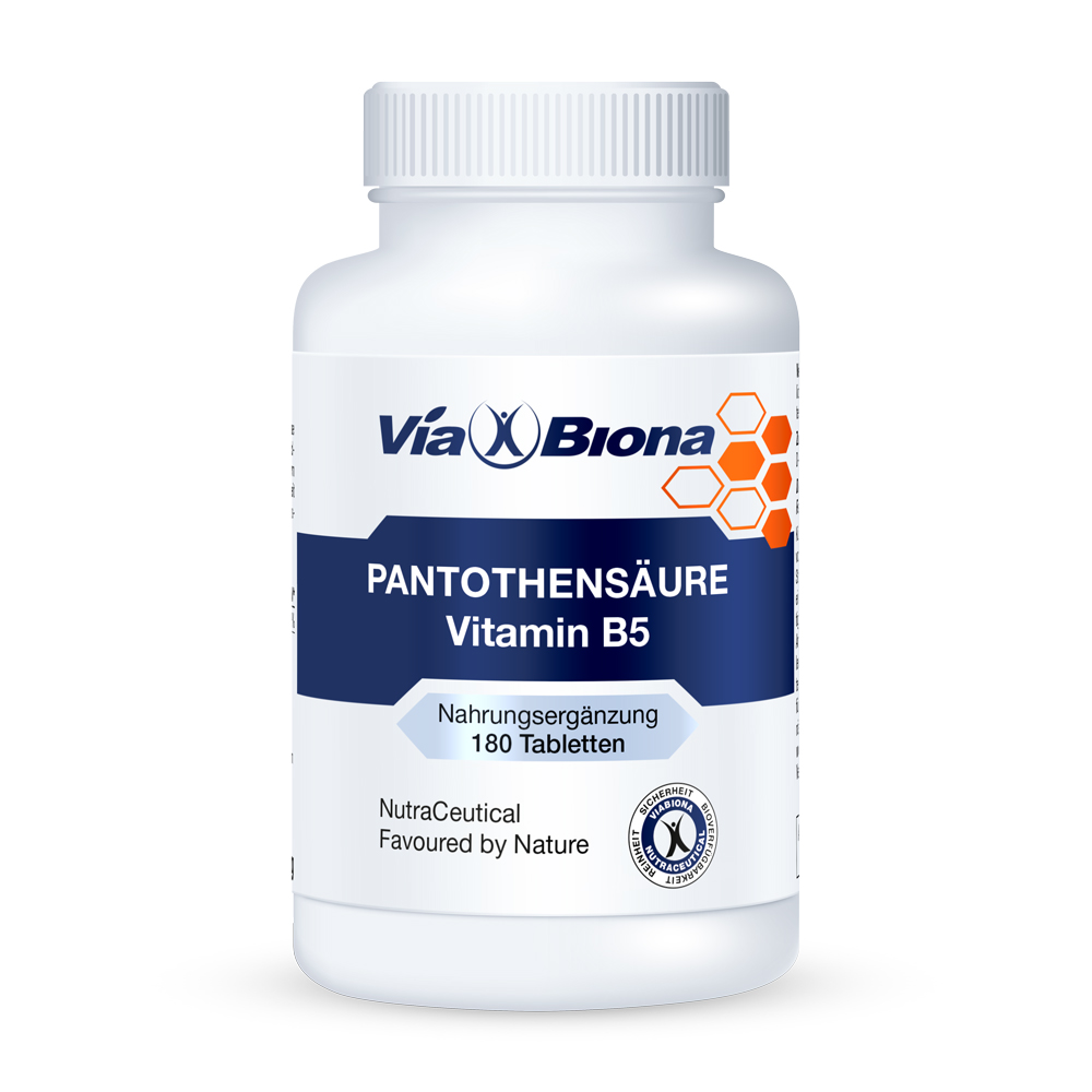 - Viabiona B5 Pantothensäure ist in der Formulierung als Calcium-D-pantothenat an Calcium-Moleküle gebunden, um eine besonders gute Resorption sowie eine verzögerte Langzeit-Verwertung zu gewährleisten