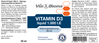 - 1 Tropfen entspricht 1.000 i.E. (internationale Einheiten) Vitamin D3 25 µg