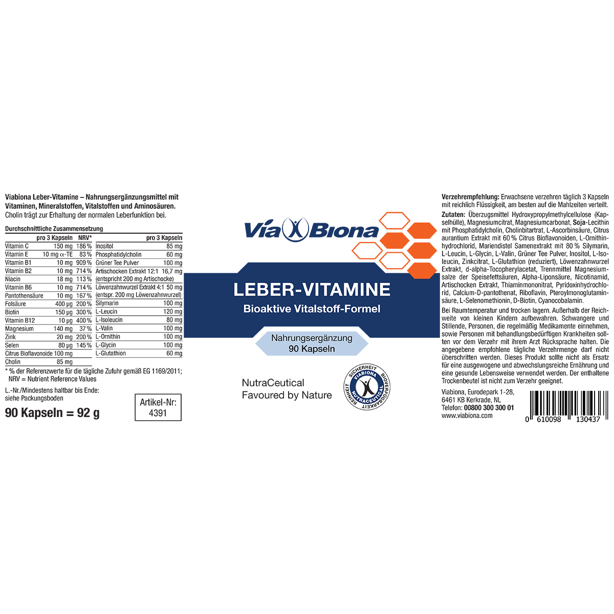 Fazit: Viabiona Leber-Vitamine stellen eine gezielte Kombination hochwertiger Nährstoffe bereit, die täglich zur Unterstützung und zum Erhalt der normalen Leberfunktion beitragen. Die sorgfältig abgestimmte Rezeptur fördert eine optimale Versorgung des Organs bei seinen wichtigen Aufgaben als zentrales Entgiftungsorgan.
