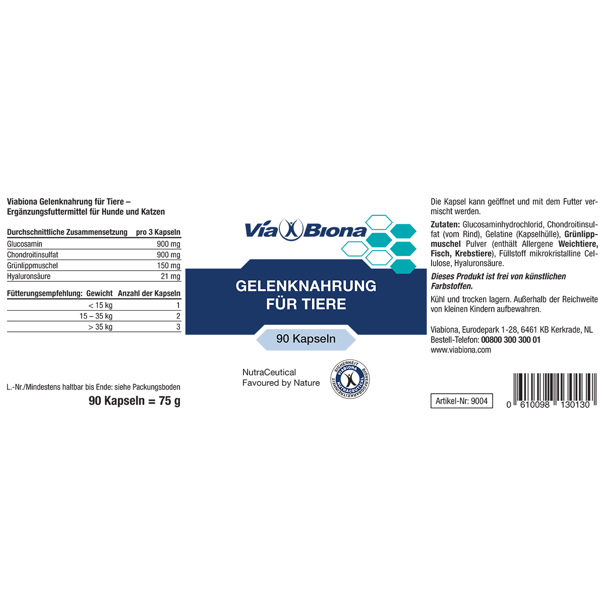 - Verzehrempfehlung je nach Gewicht Ihres Tieres: 1 Kapsel bis 15 kg Körpergewicht (weitere Angaben, siehe bitte Etikett)