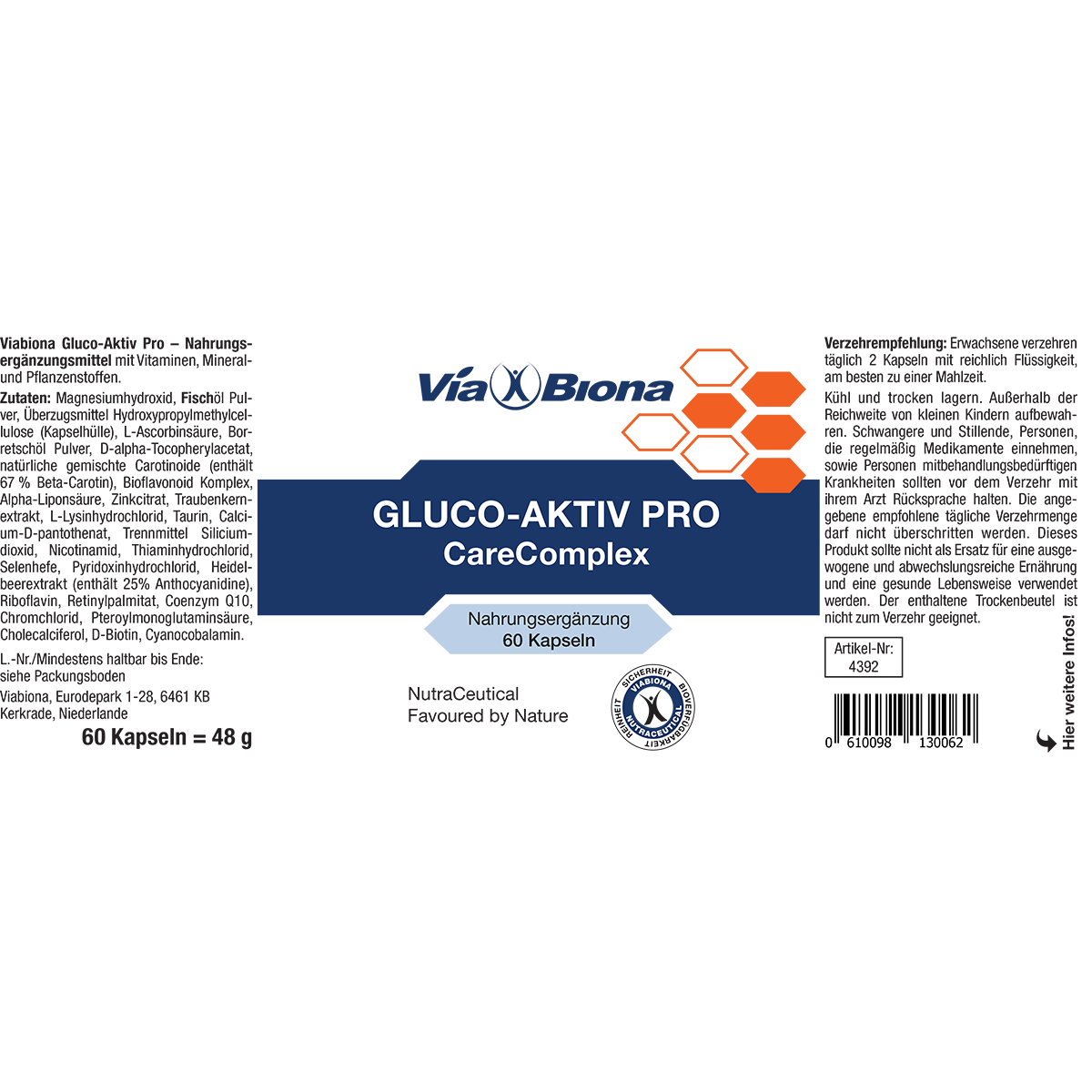 Die Aufgabe der hochkonzentrierten Vitamine A, C und E ist das Neutralisieren freier Radikaler. Mineralstoffe und Spurenelemente wie Zink, Chrom und Magnesium unterstützen wesentliche Funktionen bei der Insulinwirkung und dem Zucker-Stoffwechsel. Die Vitamine der B-Gruppe fördern den Kohlenhydrat-, Aminosäuren- sowie den Fettstoffwechsel und tragen zum Abbau des Gefäß schädigenden Homocysteins bei. Omega-3-Fettsäuren (Fischöl) sind als Cholesterin-Senker aktiv und schützen allgemein das Herz-, Kreislauf- und Gefäßsystem.