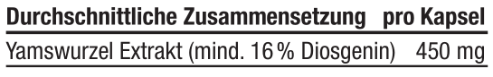 | Yamswurzel Extrakt (mind. 16% Diosgenin) | 450 mg |